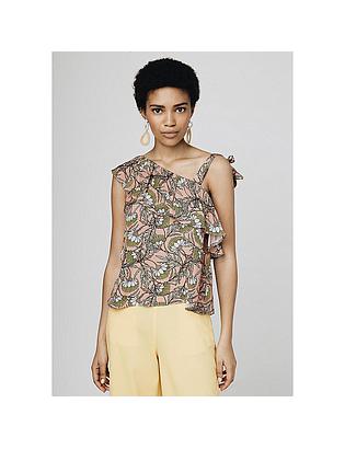 Top asimétrico satén flores
